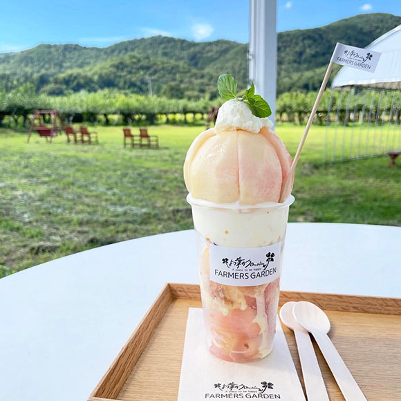 爽やかな風景を楽しみながらいただく桃パフェは最高でした。