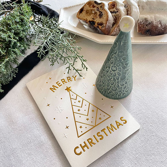 大切なお手紙だから、きちんと置き場所を作らねば!と思い、閃いたのが「クリスマスツリーの置物」の下に置いてもらうこと。