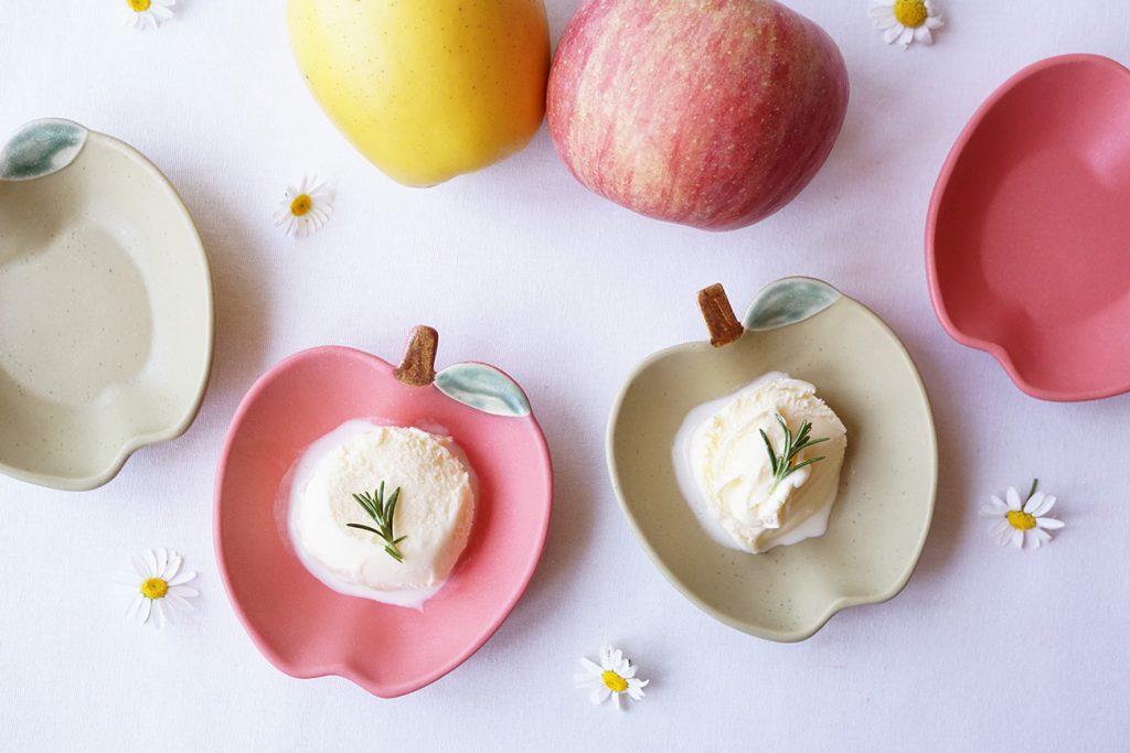 りんごといえば…大人もこどもも大好きなフルーツ。絵本の中に出て来そうな可愛らしいりんご小鉢は、副菜やデザート鉢としてもぴったりのサイズ感です。2色あるので、家族で色違いで揃えていただくのもおすすめです♪食卓に優しく、温かな雰囲気を広げてくれると思います。