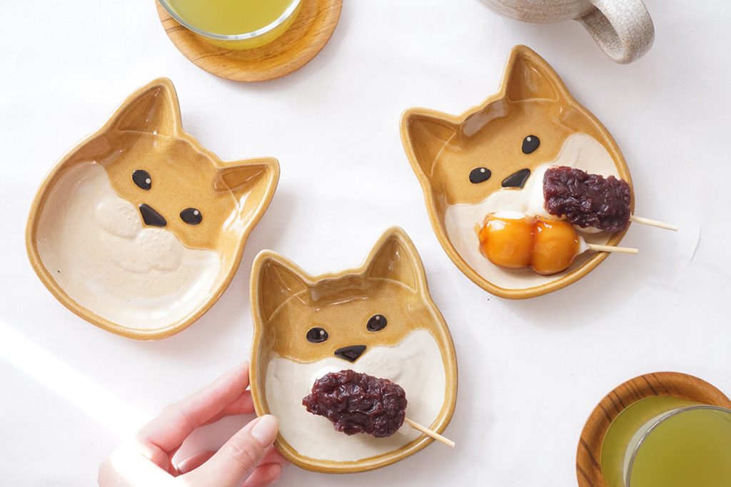 ピンと立ち上がったお耳、くるりとした大きな瞳が愛おしい柴犬の小皿です。口元の白い部分にミニサイズのお団子を盛りつけると…まるで柴犬たちが団子を味わっているかのようで、とっても可愛い♪