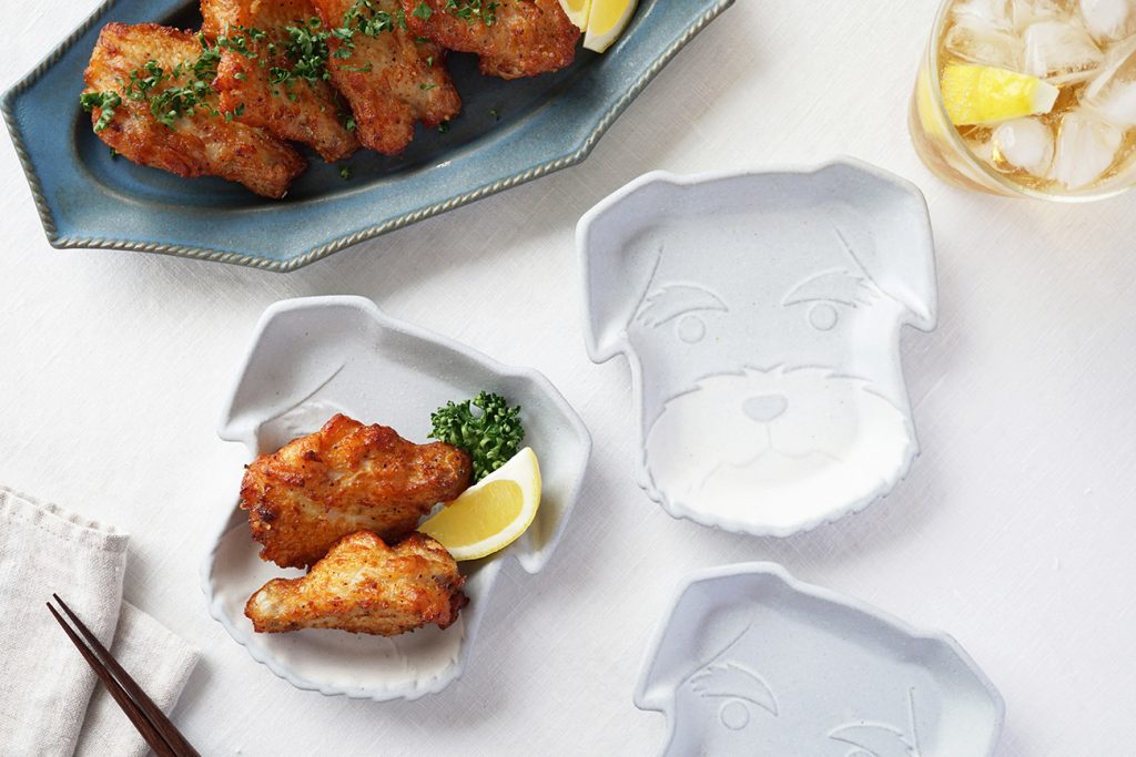 一週間頑張った自分へのご褒美に晩酌を楽しむ日には、おつまみのチキンの取り皿に。落ち着いた色合いの器と、可愛いシュナウザーの小皿を組み合わせると、なんだかいつもよりキリッとした表情にも見えてきます。