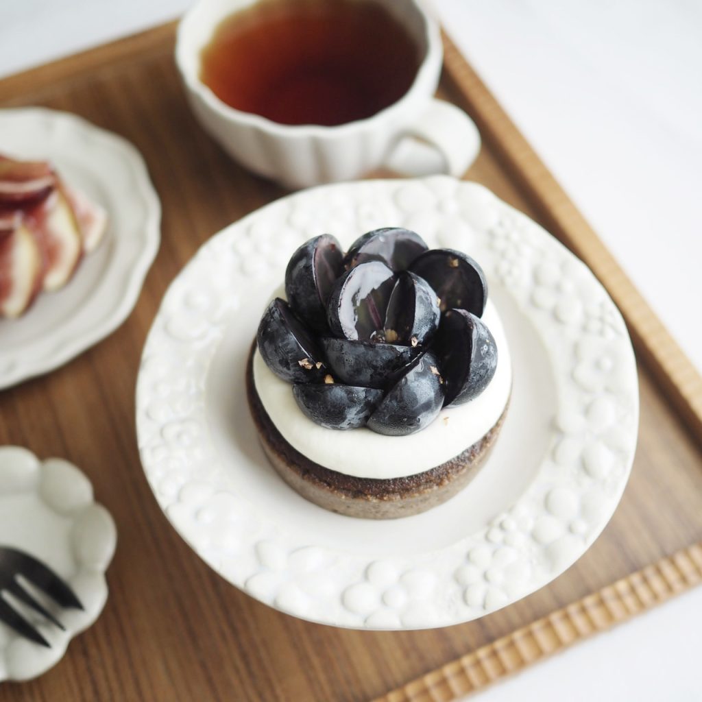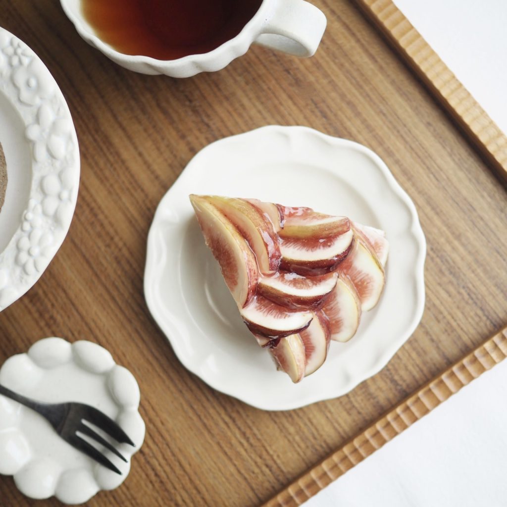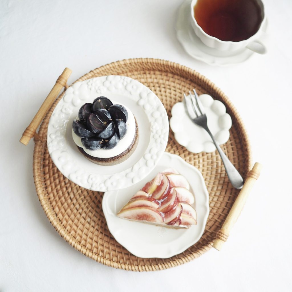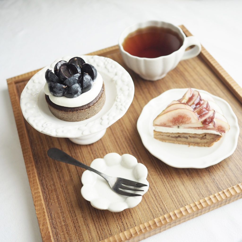 お店でタルトを2種類頼むと、いつもひとつは高台つきのお皿、もうひとつはフラットなお皿にのせて出てくるのがとてもかわいらしくて。いつか自宅でもこちらのカフェごっこをしてみたいな…と思っていたので、ようやく念願が叶いました。