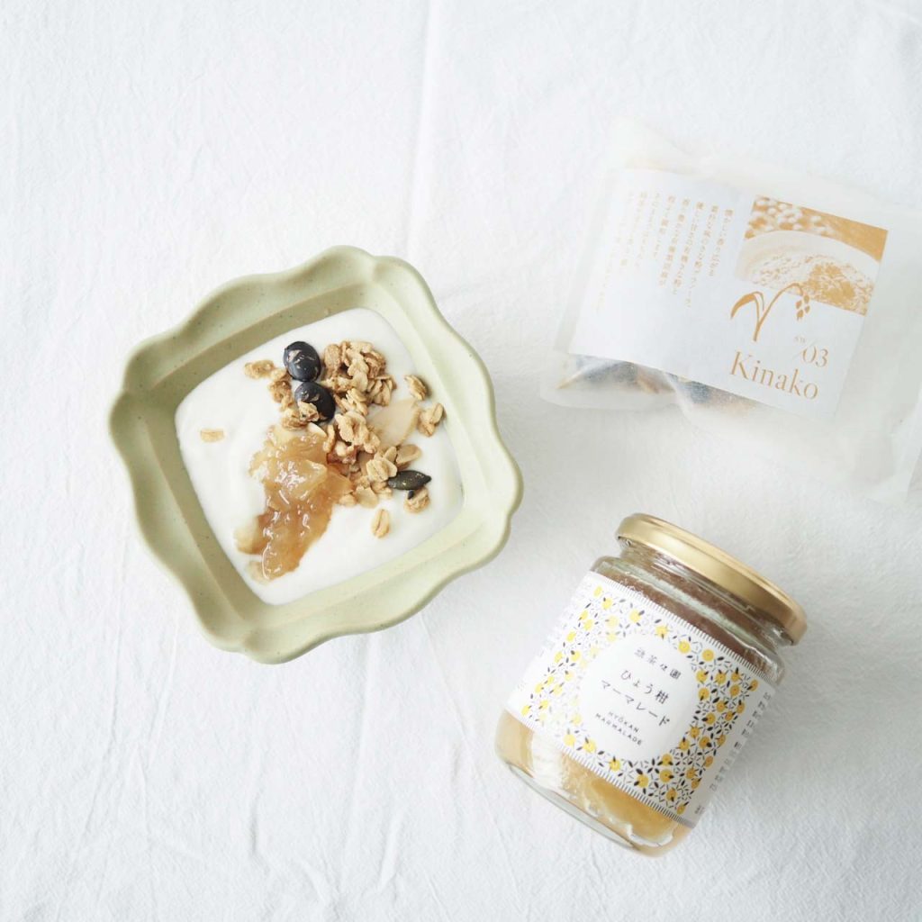きな粉グラノーラも、ひょう柑マーマレードもどちらもやさしい甘さで、豆乳ヨーグルトと一緒にやさしいピスタチオカラーの西洋正方鉢にいれておやつにしたら、とっても心がほぐれました。