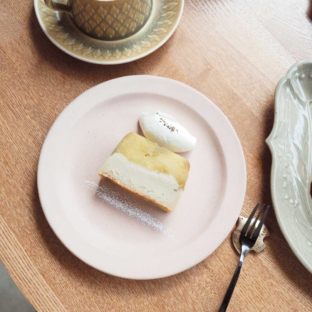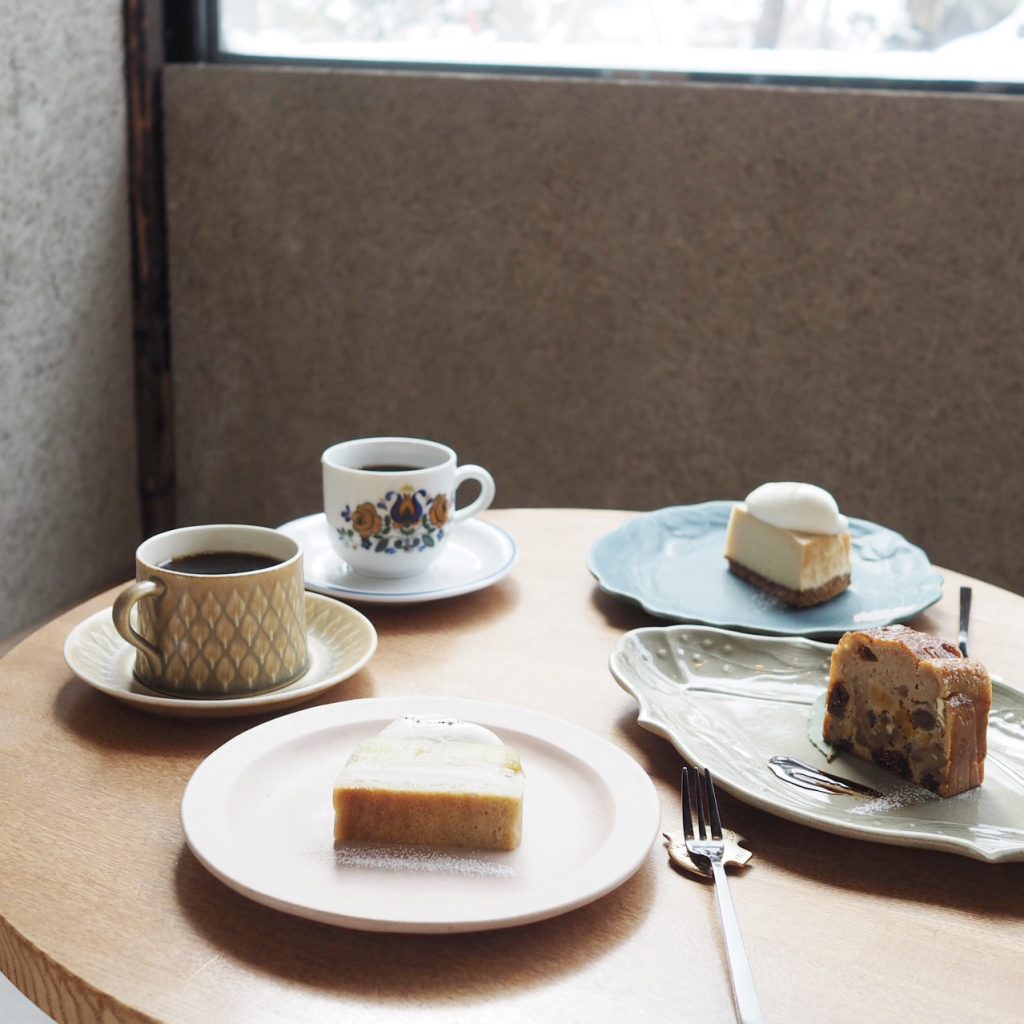 ケーキは週替わりで、この日は3種類。母と来ていたので、せっかくなので全種類頼んでシェアしました。よしざわ窯の器たち、かわいいケーキがのってみんな輝いています…!