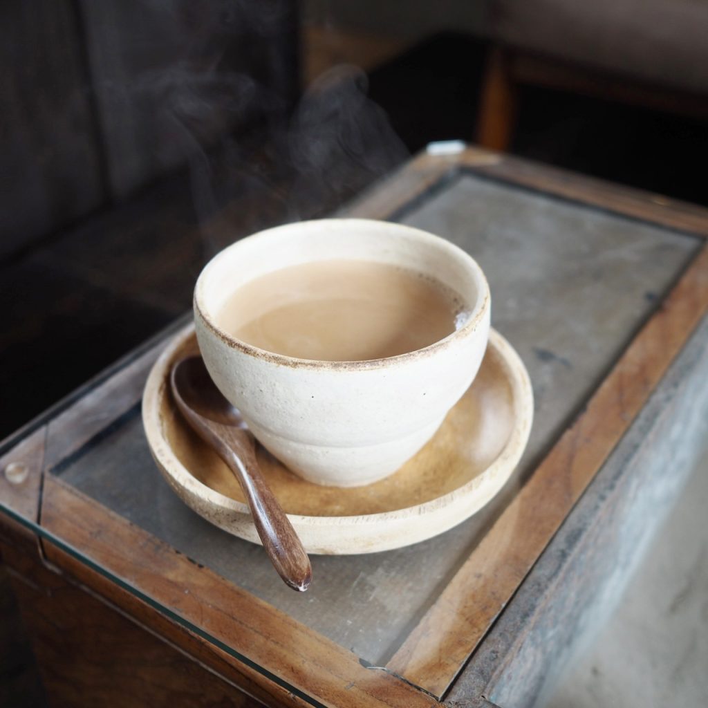メニューにあったチャイも気になって、コーヒーとケーキをいただいたあとにお代わりしました。インド式で煮出したチャイは、スパイスの効いた本格的な味。甘くて温かい飲み物って、どうしてこんなに心がほぐれるのでしょうか。。こちらはよしざわ窯ではないですが、器もチャイの雰囲気と合っていてすごく素敵でした。